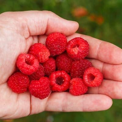 Framboisier remontant ( RUBUS idaeus Polka® ) framboisier précoce à gros fruits très sucré et juteux, il offre une forte productivité d’été jusqu‘en automne, variété très vigoureuse qui doit être absolument palissée.